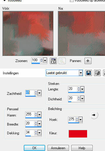 Effecten//kunstzinnige effecten/penseelstreken, instellingen zie vb